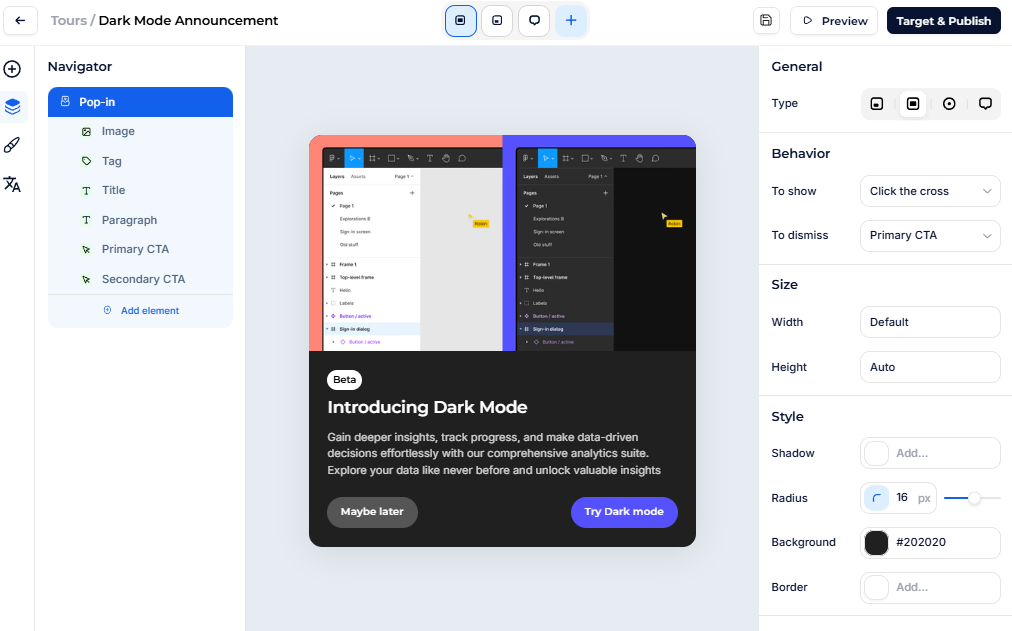 The best user experiences are the ones that feel native to your product. — Build engaging announcements while staying in control of the look and feel.
